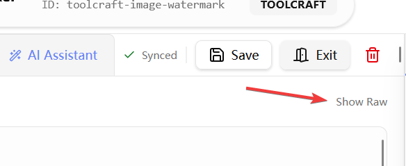 After entering tool edit mode, you can see an AI Assistant button on the right side of the editor. Click it to expand the AI Assistant panel.
